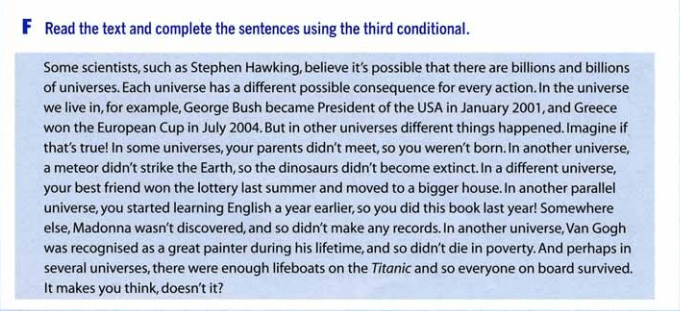 - If my best friend had won the lottery last summer, he/she would have moved to a bigger house.